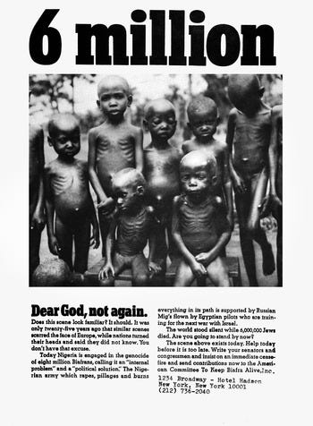 The Biafra conflict in Nigeria, a topic I’ve been researching a lot after spending so much time in this country, was a tragedy whose true scale was initially downplayed on the world stage. Mass killings were happening everywhere, kids were dying of hunger due to the blocking of food transportation, human rights were violated every second. Yet, it was only one year later, when information spread and photos were published in journals, that other countries became interested in it and started to act (some just to get a piece of the cake from the proclaimed peace. Doesn’t that sound familiar?)